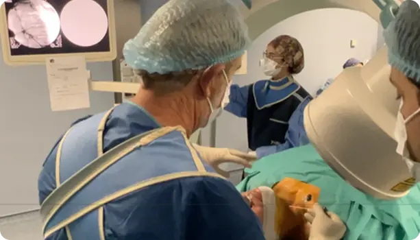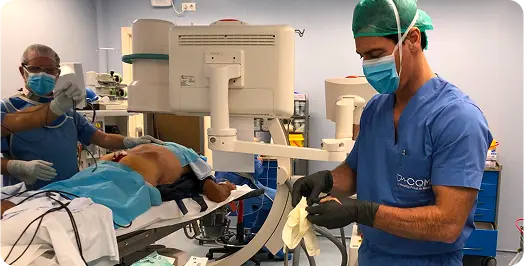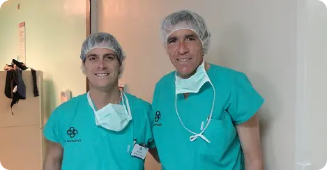 El Dr. Martín Estévez perfeccionandose en quirófano junto al Dr. Fernando Kirchner.