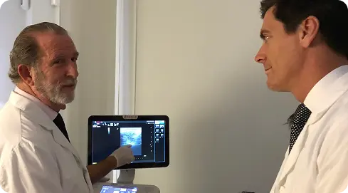 El Dr. Martín Estévez junto al Dr. Fernando Kirchner en el Instituto de Traumatología Barcelona, España.